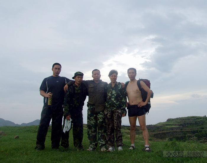 <font color="#ff6600" size="4"> 不虚此行___十八潭回来后的心得<br/><br/> 过瘾___最大的感受<br/><br/>这次十八潭之行,在大多数人没有心理准备的情况下说去就去的,本来报名的人就不多,再加上几个临时有事退出,最后5人成行.走过全程,我们庆幸没有组织太多人去,虽然这次十八潭溪水不大,前面3潭都能绕过去,只有第四潭需要泅水,但人多了,要完成整个穿越,还是有点难度的.第四潭上去基本不用涉水,但穿山攀岩的难度不亚于前面所走过的四大龙潭.人少,反而争取了更多的戏水,赏玩的时间.我们早上8:40左右从龙王村出发,到下午4点多就到了终点东林村,走完全程时间上还是比较宽松的.先上张集体照,具体驴程请听开拓分解.<br/>此次同驴者:本蟀哥 后来 开拓者 野狼 萤火虫<br/></font>