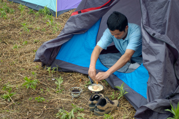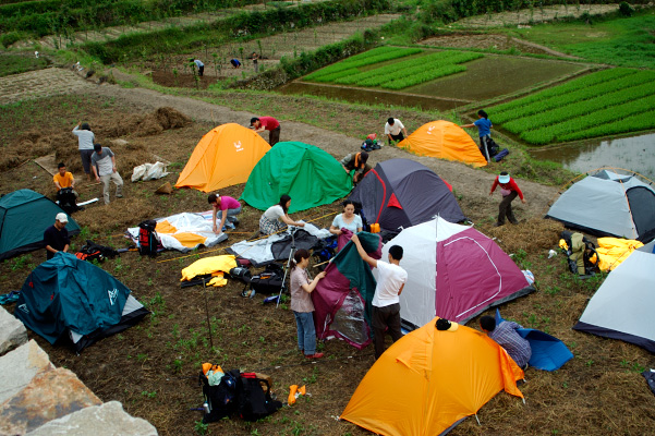 >来看看各位搭帐篷的英姿.</P>