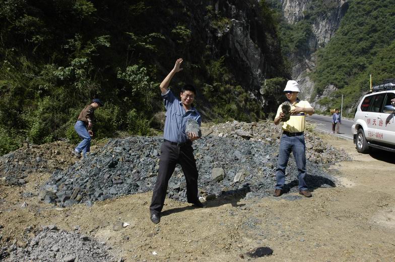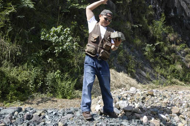 这里的石头很散,看他们都在表演拍石头!</P>