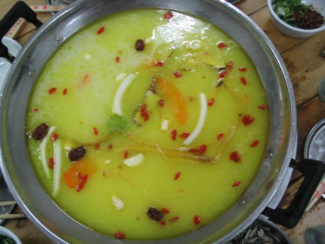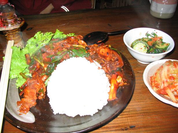 <P>这是沙锅饭和配菜(看见辣椒了吗?吓死人!)</P>