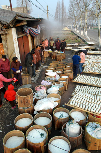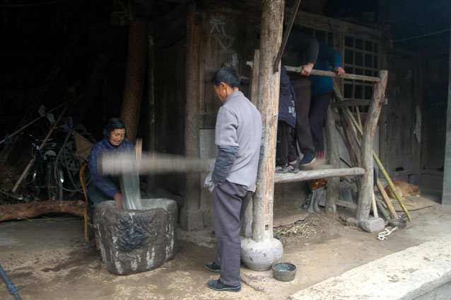 现在居然还有放在倒臼里倒年糕的。。。。