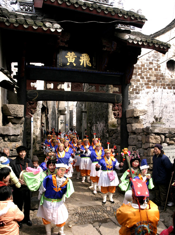第三张是板凳龙,有七十多条板凳连接起来,共有一百多米长,每条板凳上安装六、七盏灯笼,绕着村子的大街小巷、田畈蜿延而行。一是闹元宵的一种方式,增加热烈气氛,二是祈求平安、幸福、丰收。这是新昌县大市聚镇自古以来从未间断,每年的正月十五、十六晚上举行。今天晚上比咋天更热闹,请诸位摄友前来观摩。05756048160