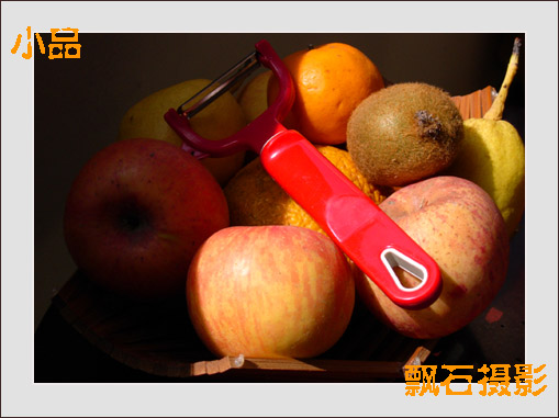 1、楼主色调和影调控制得很好,亮部层次和暗部细节丰富,本来很单一的画面,楼主用光进行了分割,比例得当,呼之欲出,显得灵活而生气。不足的是那把“横空出世”的水果刀似乎有点“篡位”了。