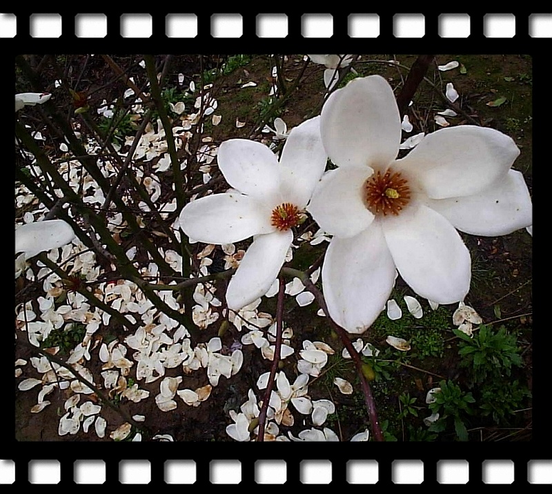 这是在有名的苗木基地------ 白水村拍的.那里的玉兰都是这样的,且前一天晚上正下了雨,落了一大片,没拍到了更多呢!那里还有玫瑰色的玉兰.没有叶子,看起来很美