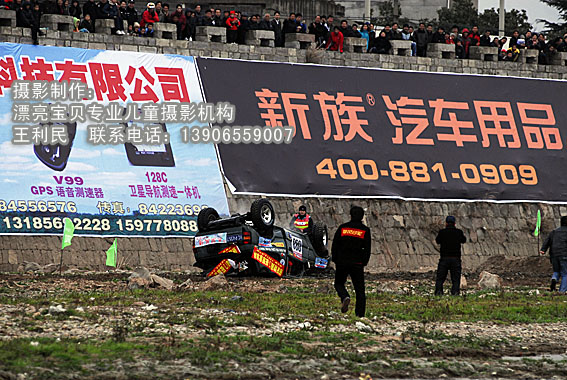 赛手都高速冲坡,没有控制好,这样向前180的前翻确实少见,从车的受损情况看,是没有装防滚架,危险的。