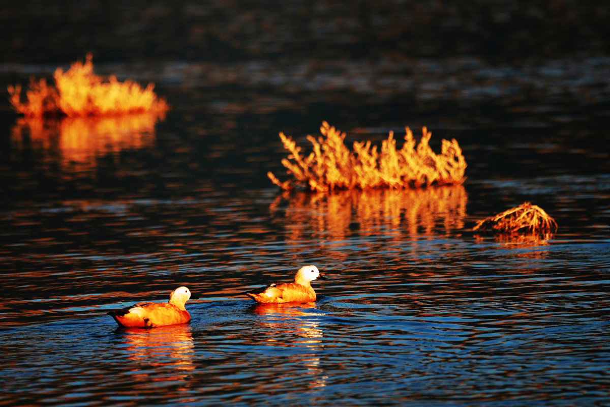 拉萨河里的野黄鸭