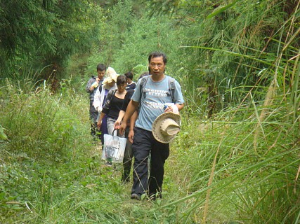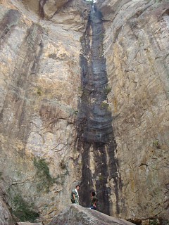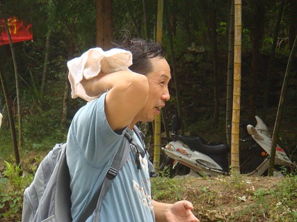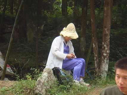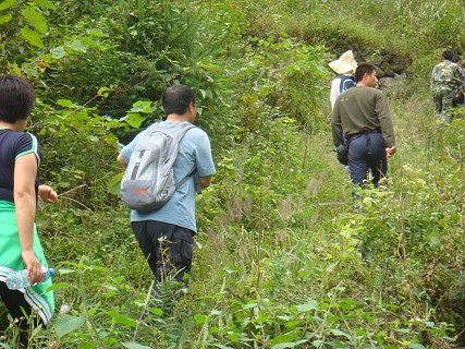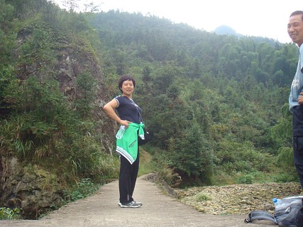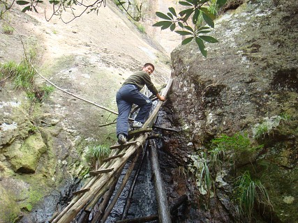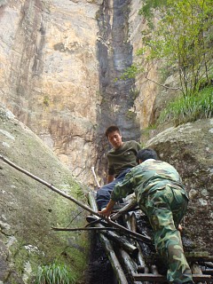 去雪上的路上有条岔道通往“仙人浴池”景点。大家拾级而上到顶,攀云梯而上,终因上头水太少、下梯困难而让大部分人知难而退
