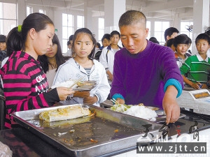 上午放学铃声敲响了,同学们纷纷走出教室,向食堂走去。朱耀婷的妈妈显然也习惯了学校的生活,从学校大门走到操场上,等着她心爱的女儿。